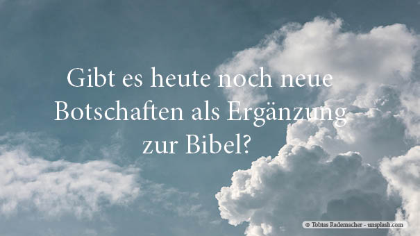 Dem Wort der Bibel ist danach nichts mehr hinzuzufügen. Schon Petrus warnt zu seiner Zeit vor „verderblichen Sekten" (2 Petr 2,1), die mit eigenen Lehren die Menschen zur Verdammnis führen. Die Zutaten und Entstellungen der Bibel von Joseph Smith (Buch Mormon der Mormonen) Jakob Lorbeer (Freunde der Neuoffenbarung), Ch. T. Russel (Jehovas Zeugen), M. Baker Eddy (Christliche Wissenschaft) u.a. sind keine göttlichen Botschaften, sondern bedauerliche Irrwege falscher Lehrer und Verführer. Gott gibt keine zusätzlichen Offenbarungen, sondern nur neues Licht über das, was er uns schon längst im AT und NT mitgeteilt hat. So bleibt die Bibel die einzige verbindliche Informationsquelle und die alleinige Messlatte, an der alles zu prüfen ist. Auch Zitate heutiger Zeitgenossen mit der einleitenden Autorisierungsformel „Der Herr hat mir gesagt..." bedürfen wegen des oben Dargelegten einer strengen Prüfung.