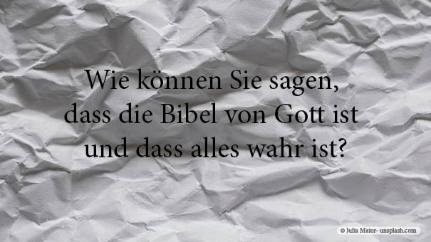 Die Bibel ist doch von Menschen aufgeschrieben worden, darum ist alles relativ zu sehen. Wie können Sie sagen, dass sie von Gott ist und dass alles wahr ist?