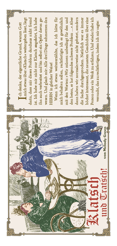 In der Anfangszeit unserer Arbeit, als unsere Gemeinschaft begann, wurde mir das Problem erstmals bewusst. Ich merkte, dass wir durch die vielen engen Beziehungen, die entstanden, zu einer regelrechten Brutstätte für den Klatsch wurden, wo er sich ausbreiten und alle Beteiligten infizieren konnte. Das machte mich sehr betroffen. So las ich viele Bibelstellen zu dem Thema und hielt einige recht überzeugende Bibelarbeiten darüber.